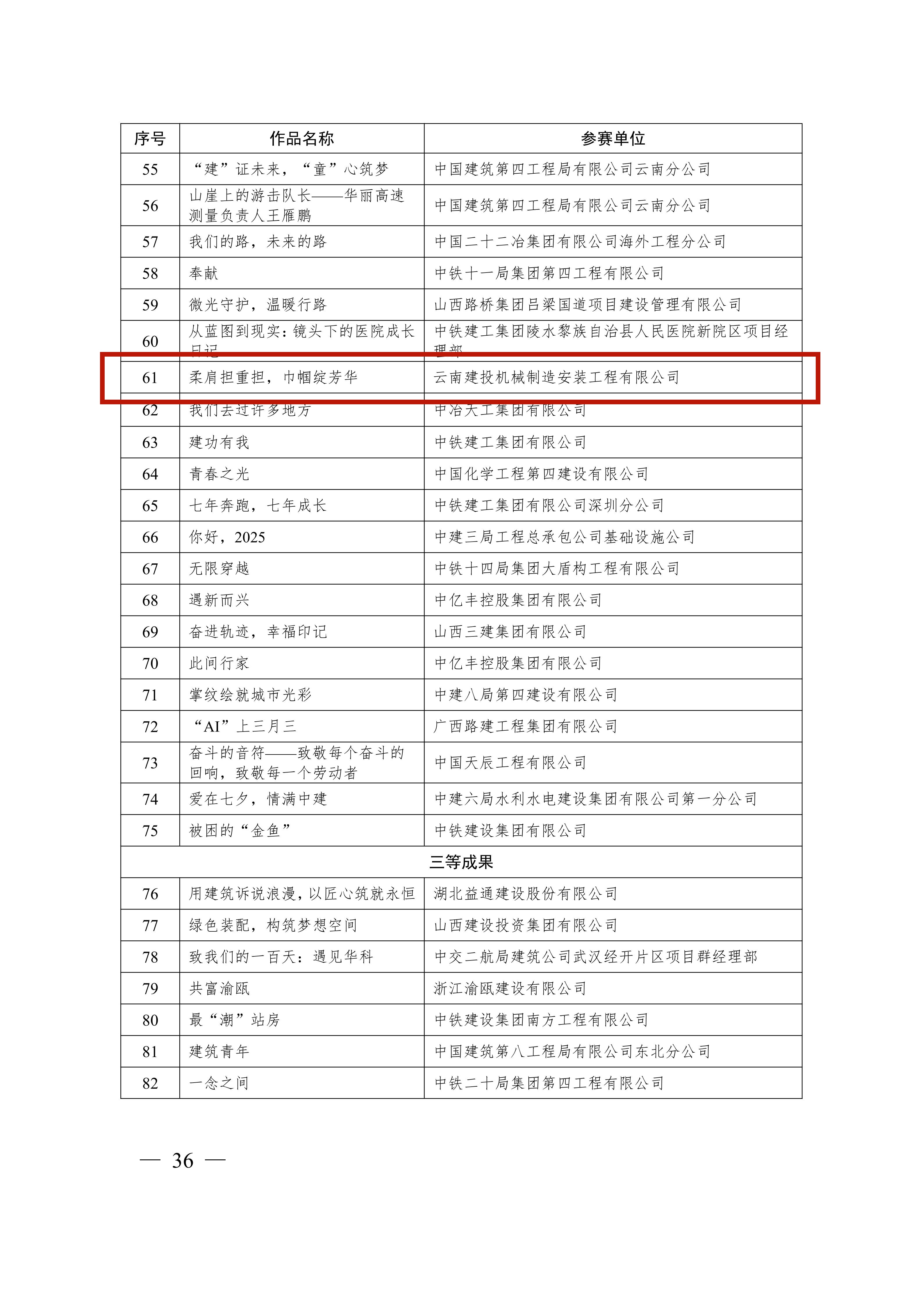 近日,中国施工企业管理协会印发《关于推广2025年工程建设企业文化建设系列活动成果的通知》,公司《机安通讯》获报纸竞赛二等成果,《柔肩担重担,巾帼绽芳华》微视频获微视频竞赛二等成果。